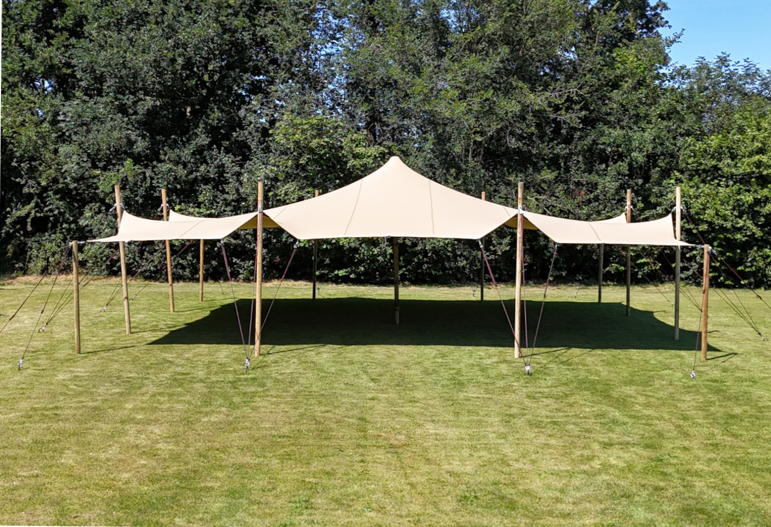 Op zoek naar een robuuste en stijlvolle stretchtent die jouw locatie of verhuurassortiment naar een hoger niveau tilt? Onze 10 × 10 m Stretchtent combineert functionaliteit met een luxe uitstraling – perfect voor campings, horecaterrassen, eventlocaties en professionele verhuurbedrijven. Wil je tijdens het evenement een extra doorgang creëren of staat er een zij- of hoekpaal in de weg? Dan kan je kleine aanpassingen aan de opstelling bovendien eenvoudigweg uitvoeren terwijl de tent opgesteld staat.