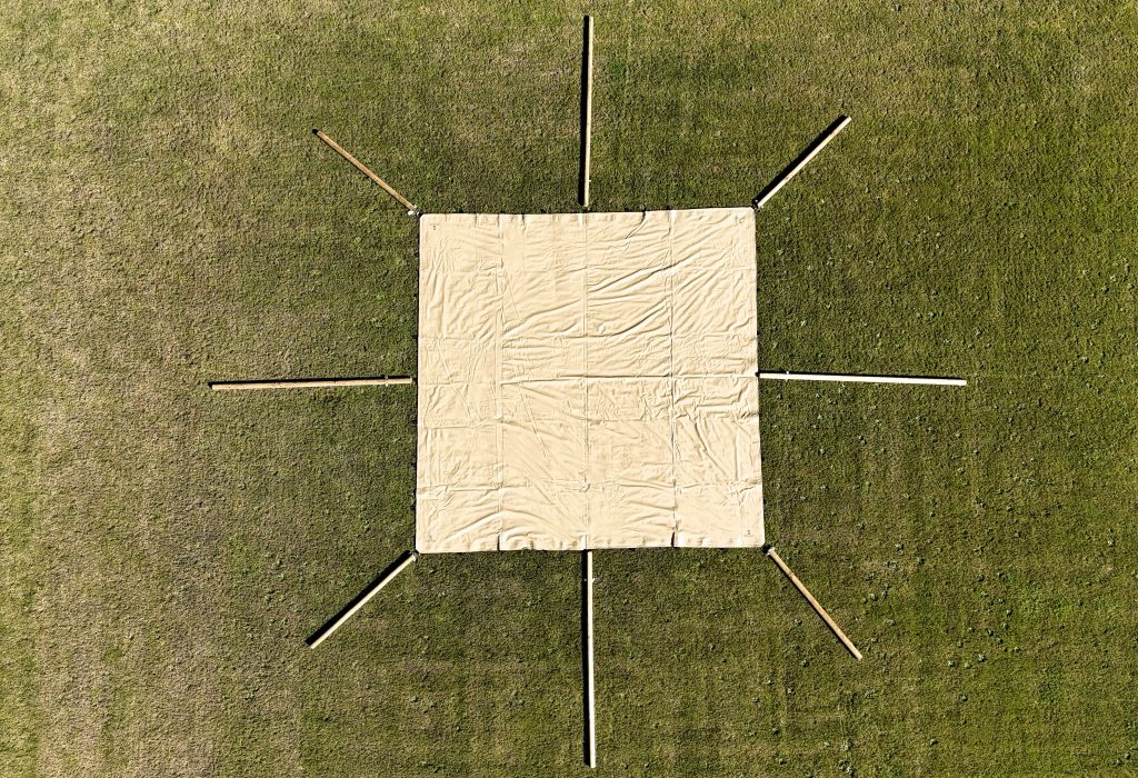Con sus dimensiones relativamente compactas de 5,0 x 5,0 m, esta carpa elástica ofrece espacio para aproximadamente 25 personas.