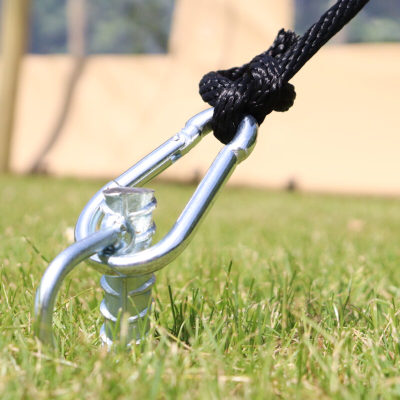 - Estacas para tienda de campaña (100 cm): Estacas extra largas para un agarre máximo.