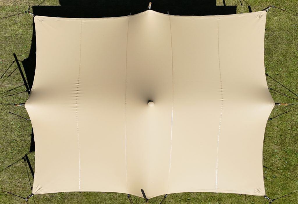 Nuestras carpas elásticas se fabrican con una meticulosa atención al detalle y a la calidad. El tejido de 720 g/m² está recubierto por una cara y presenta un acabado textil técnicamente avanzado en la parte inferior, desarrollado exclusivamente por nuestro equipo interno. Esta combinación de materiales de alta calidad y textiles ignífugos garantiza una solución duradera y segura, asegurando que su evento no solo sea cómodo, sino también sin preocupaciones.