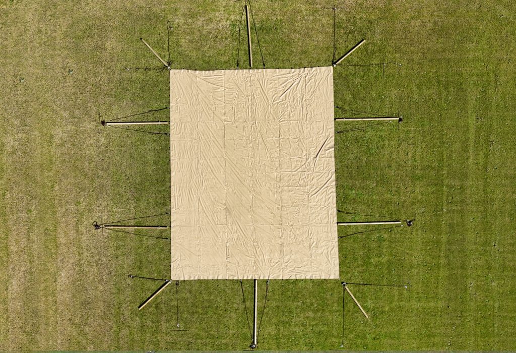 Con esta carpa elástica de 8 x 10 m, puedes alojar a aproximadamente 80 personas.