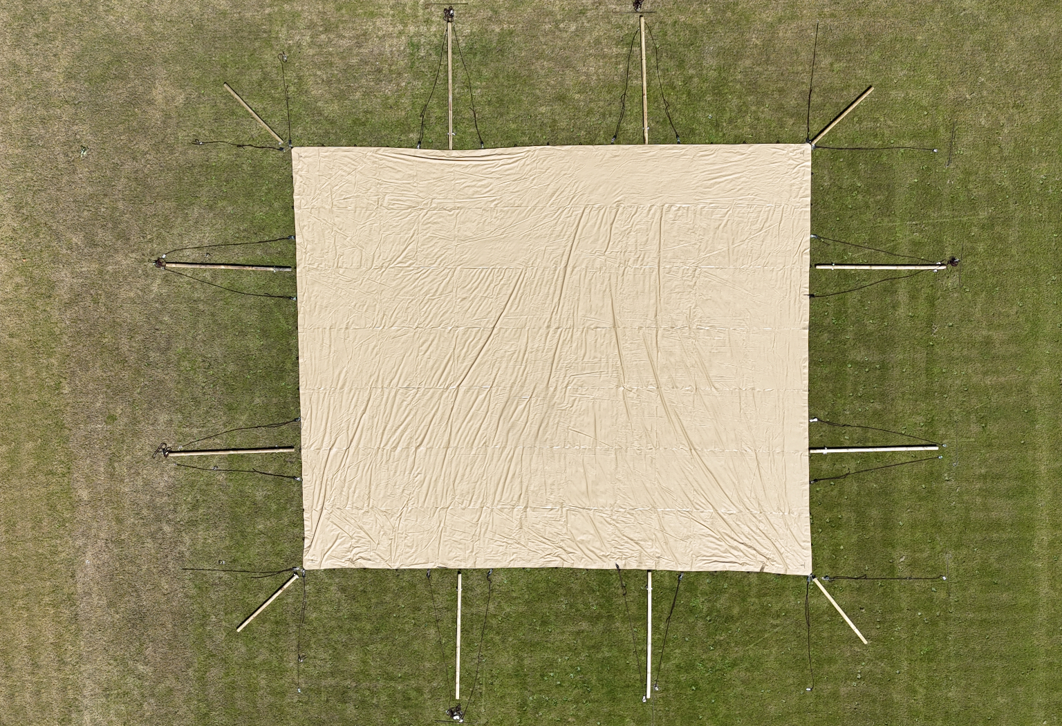 Con esta carpa elástica de 12,0 x 10,0 metros, puedes acomodar aproximadamente a 60 personas.